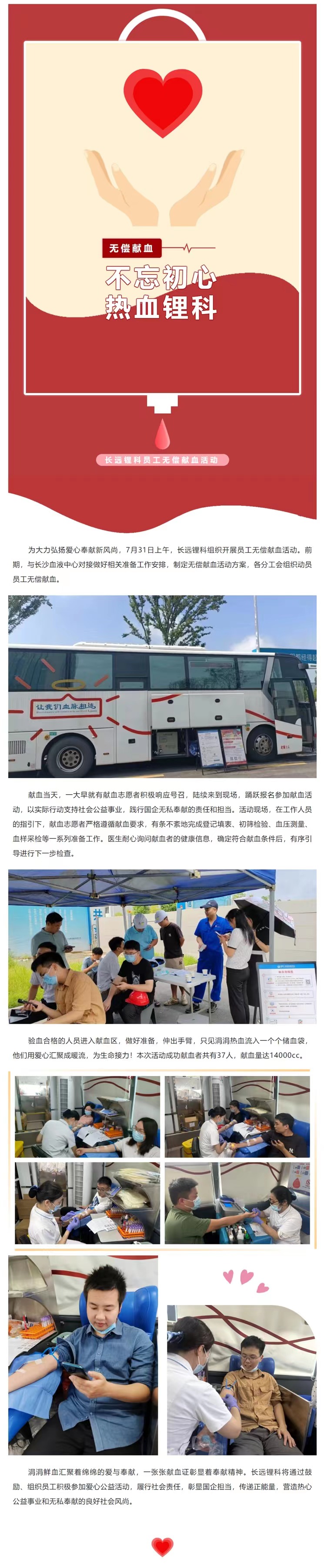 不忘初心 热血锂科 —— 长远锂科开展员工无偿献血活动