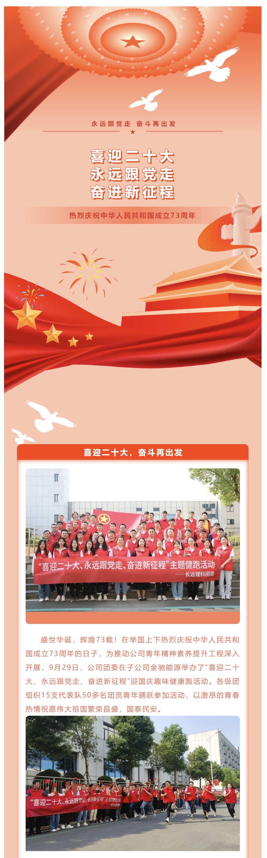 长远锂科团委开展“喜迎二十大、永远跟党走、奋进新征程”迎国庆健康跑活动