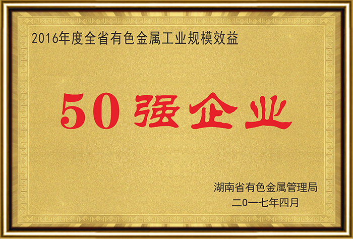 • 湖南省有色金属工业规模效益50强企业